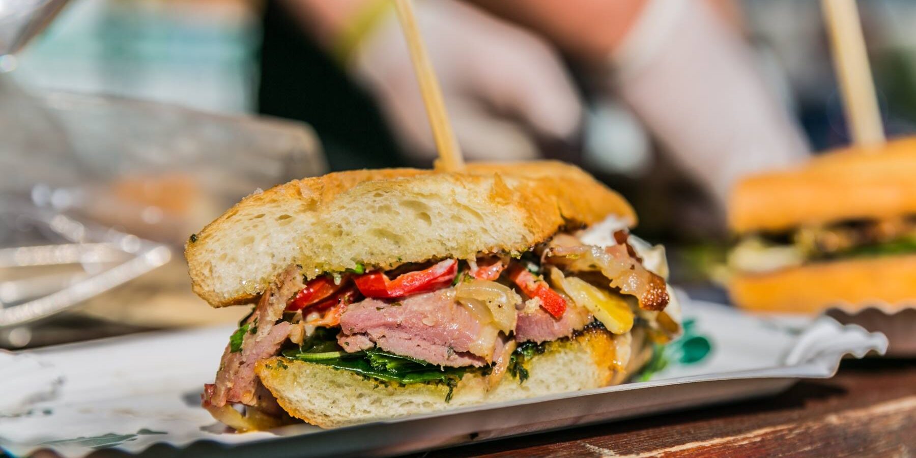 Sendviče: Bagetky rozpoltíme, natrieme bylinkovým maslom a opečieme na grile do chrumkava.